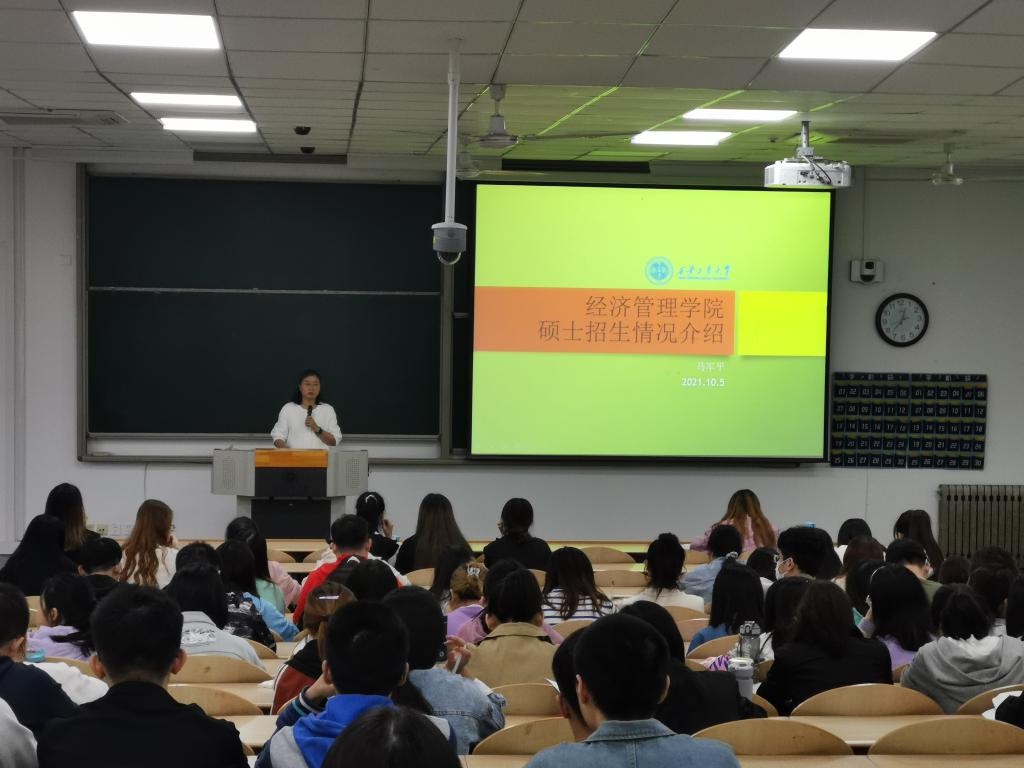 10月5日中午,best365网页版登录2022年研究生招生宣讲会在教1-101举行。管理科学与工程学科负责人马军平教授、研究生秘书、有考研意向的200余名本科生参加了此次会议,会议由马军平宣讲。