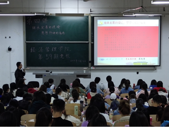 10月16日晚7时,best365网页第五十九期党课培训第四讲“继承发展的理论,思想行动的指南”在教3-217教室顺利开讲,本次主讲老师校党委组织部副部长姜冰清老师为260余名党课学员进行指导及授课。