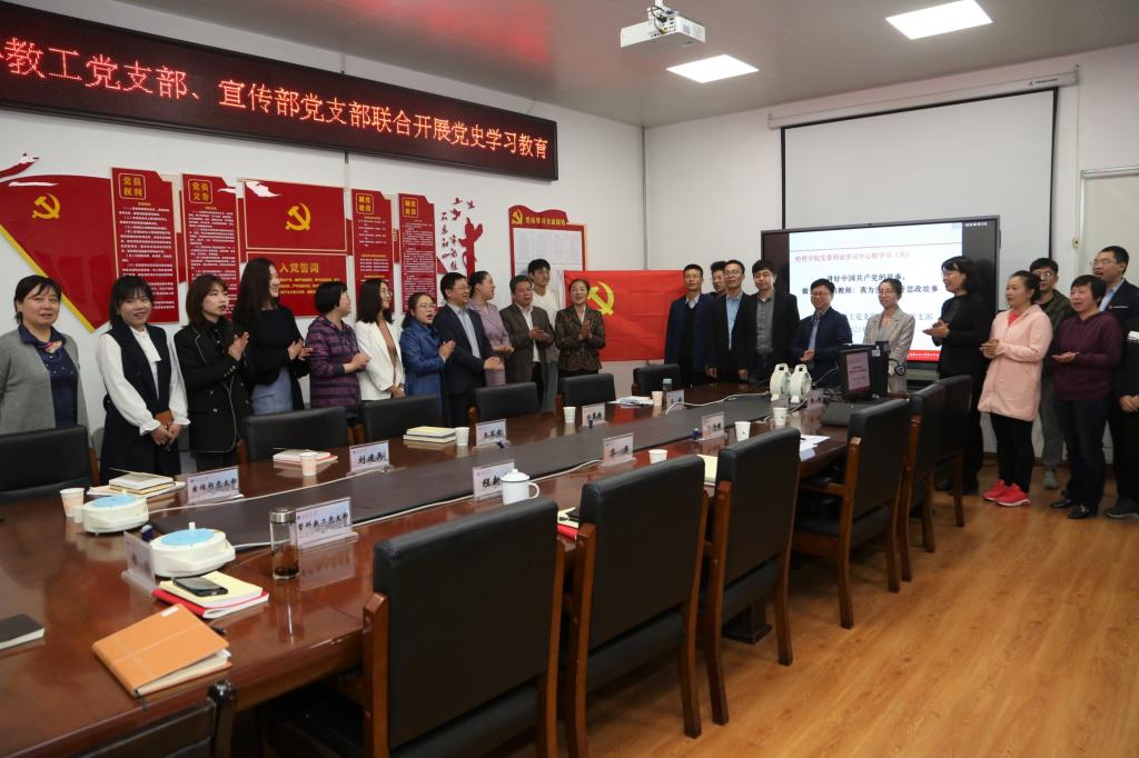 宣传部党支部在党支部书记任慧英部长的带领下,从机关深入基层,了解基层党委中心组开展学习的方式和特点,参与并深入了解学院党史学习教育情况和特色,了解教师和学生需求,从而更好地为基层服务,从各方面立德树人。在会上,宣传部部长助理、马克思主义学院副教授冯婷对思政课程和课程思政建设分享了自己的经验,并提出未来可以开展更多的合作交流。任慧英对best365网页版登录党委理论中心组学习的创新形式和学习效果给予了肯定,并就如何做好课程思政提出了自己的看法,对未来两个支部的联合开展党史学习教育谈了初步的规划。