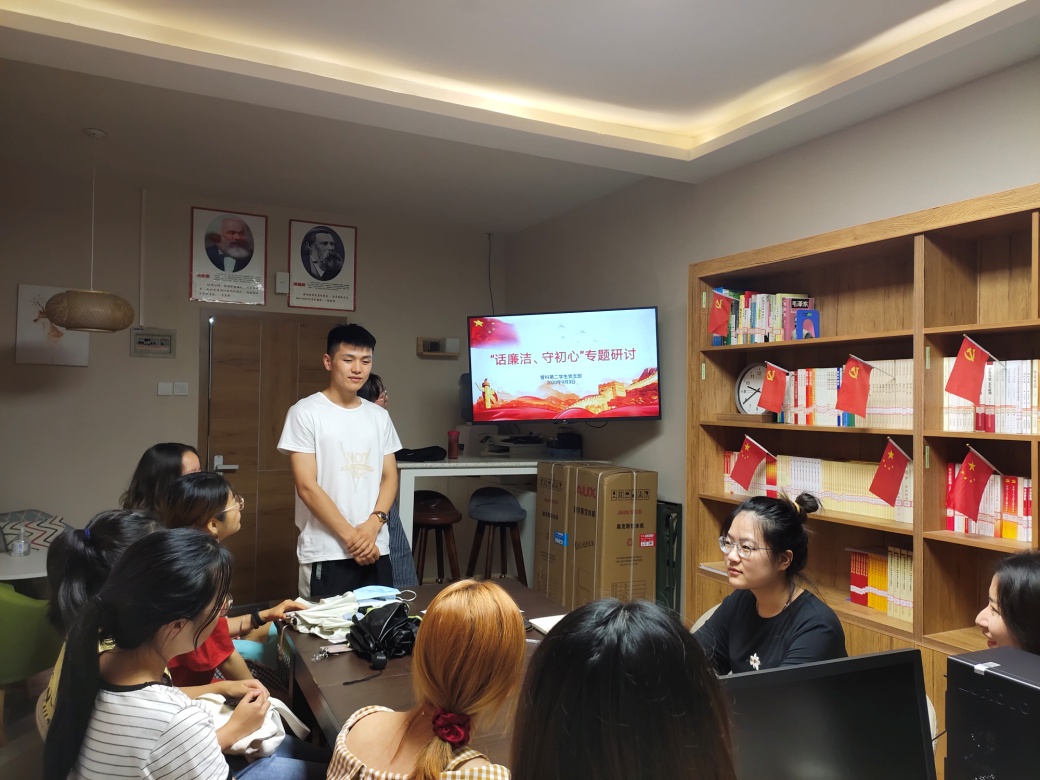 为深化以案促改教育工作的持续进行,筑牢党员思想防线,堵塞制度漏洞。2020年9月3日下午18点,best365网页管科第二学生党支部于知未研习社组织开展以“话廉洁、守初心”为主题的专题研讨会。本次研讨会由组织委员沈心怡主持,支部全体同志参与。