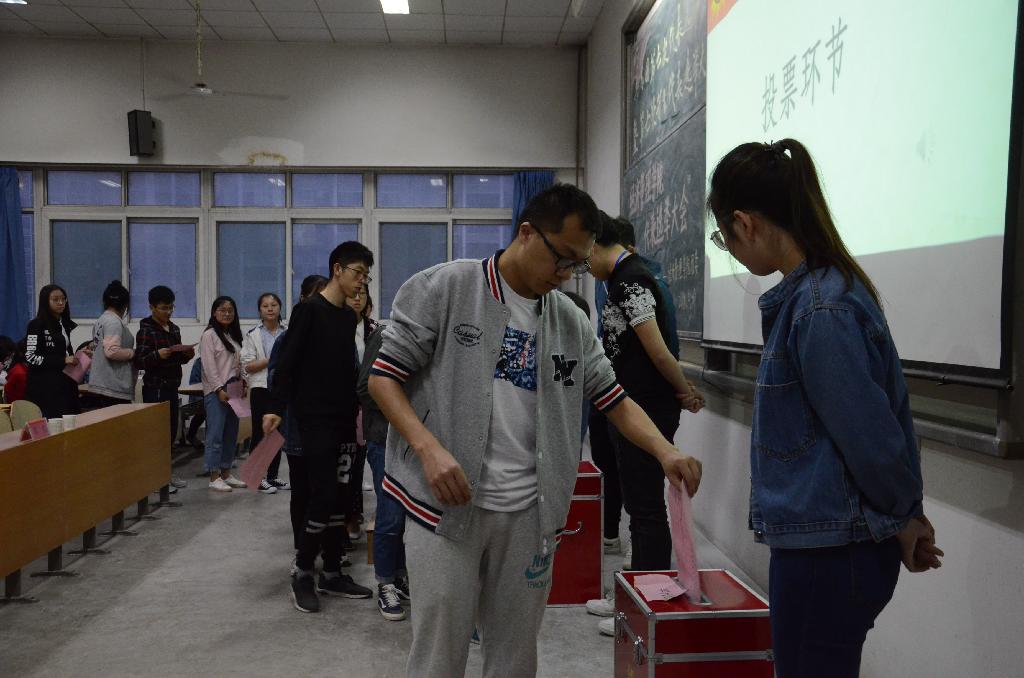 大会第二部分为选举进行阶段。参加本次选举的团代表共有100人,学代表98人,首先由记票人员核实代表人数并分发选票,并由主持人宣读选票填写规则,全体代表进行无记名投票。各代表本着公平公正的原则,根据候选人情况介绍表,谨慎地行使自己的投票权,严肃认真地进行现场投票,在所有团的代表投票结束后,12名计票人在2名监票人的监督下紧张仔细地统计着每一张选票。