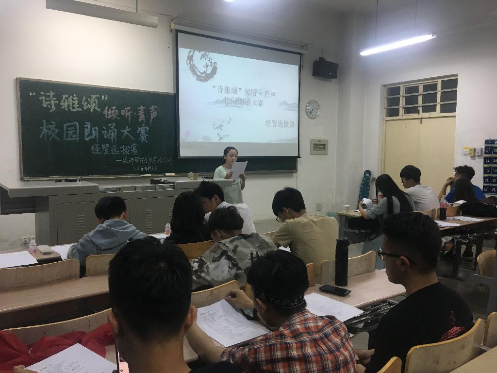 比赛开始前,参赛选手们依次从学习部提供的朗诵文稿中抽取各自的参赛作品,并给予选手时间做好朗读准备。比赛开始,每位选手在经过简单的自我介绍后,便开始正朗诵。他们或通过激昂的文字,缅怀沉痛的历史;或通过铿锵有力的誓言,抒发对母亲的感恩;或低吟温柔似水的诗歌,带我们重温了往昔纯真的感情。现场观众深受感染,并报以热烈的掌声。比赛尾声,主持人宣布了进入复赛的十位选手,评委给每位选手给予了不同的指导建议。
