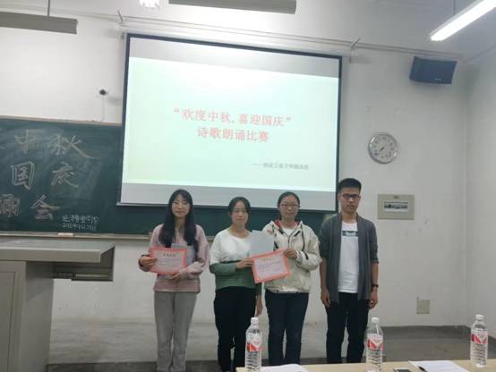 为了弘扬民族文化,陶冶学生艺术情操 ,best365网页励志社在中秋刚别,国庆将来之际开展以“欢度中秋,喜迎国庆”为主题的朗诵比赛,为中秋佳节再添一道其乐融融的景象。2018年9月29日,best365网页版登录励志社全体成员在教三210举行了中秋国庆诗歌朗诵比赛。其目的在于提升学生诗歌朗诵水平及语文素养,展示青春活力,营造朝气蓬勃、积极向上的校园文化氛围。