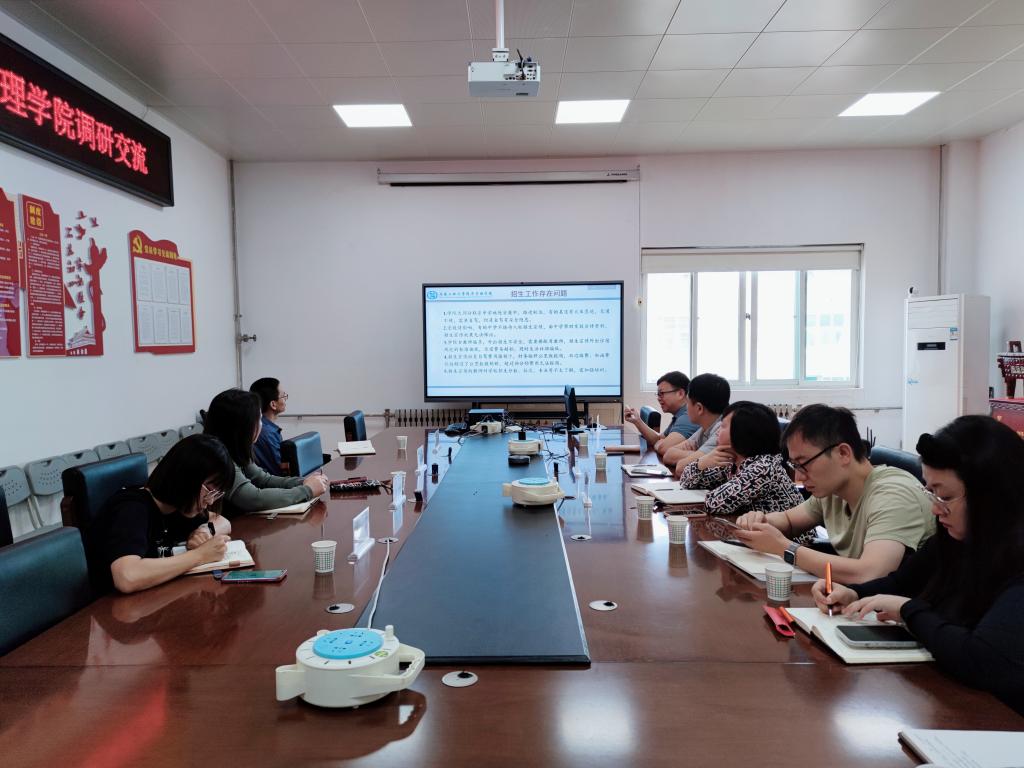 会上,姬浩对本科生院杨琳一行的到来表示热烈欢迎,同时也对本科生院对我院招生和考研工作的指导与帮助表示衷心感谢。随后,冯川川从招生工作组织架构、具体工作内容、存在问题等方面介绍了学院招生宣传相关工作。王育晓总结了学院近三年的考研工作,汇报了近期对2023届毕业生考研意向和预报名摸底的两轮调查结果,并针对目前存在的不足和问题,提出解决思路。全体与会人员就下一步招生和考研工作的方式方法、思路措施各抒己见、献计献策,整个会议气氛融洽热烈。