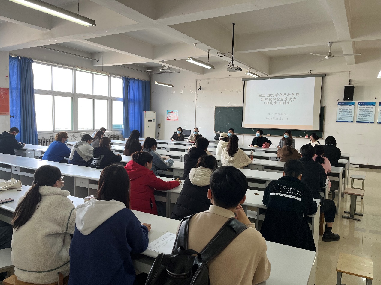 为进一步推进教学评估整改工作,全面掌握本学期开学以来研究生和本科生教学运行情况,11月17日下午,best365网页在教5-506召开了期中教学检查座谈会。本次会议由研究生辅导员石慧敏主持,学院党委书记姬浩、党委副书记王育晓、教务秘书张莉和马琳、本科生辅导员王倩倩、辅导员助理苏慧峰,以及研究生和本科生所有班级的学习委员参加。