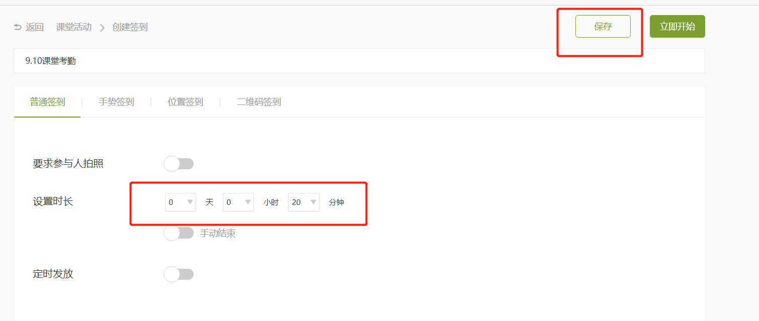 老师进入到自己的在线课程里,点击活动模块,将课堂上设计的活动提前添加保存,活动时长及其他发放细节可由老师自行设置。