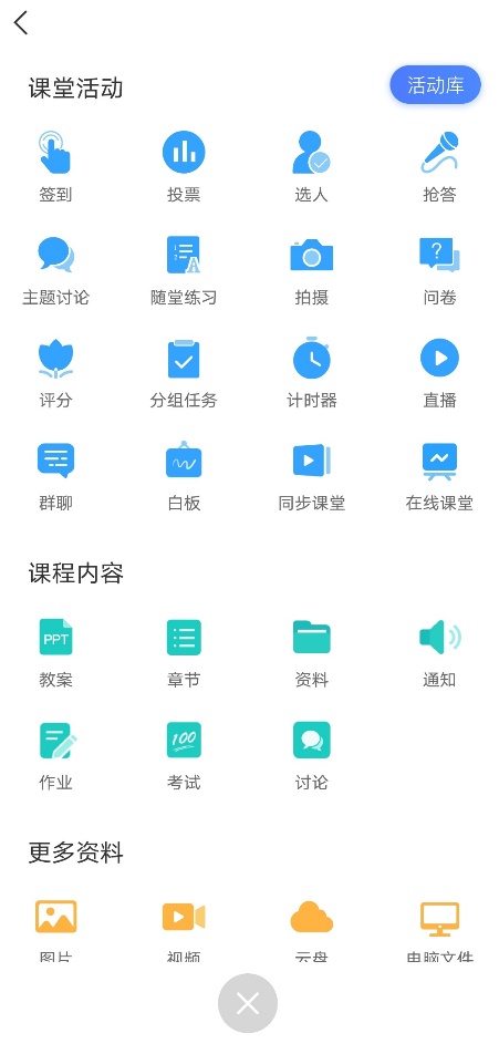 如果老师想要在开展直播上课的同时,想和学生在课堂上有更多的互动,那么老师可以利用学习通互动功能开展更多智慧教学活动,让课堂变得更有趣,更有质量,学生有更多的参与感,并且形成过程性评价。
