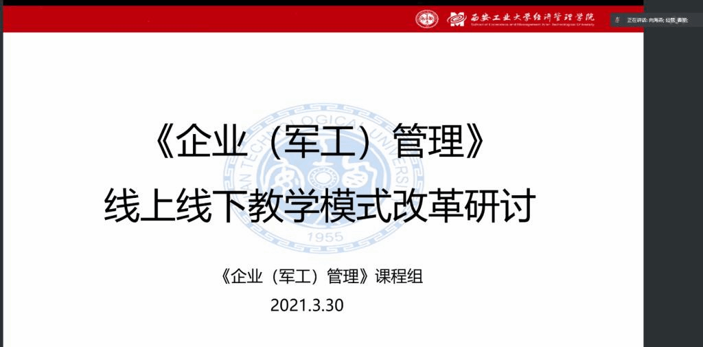 2021年3月30日晚,best365网页版登录best365网页版登录《企业(军工)管理》课程组在腾讯会议召开教学改革研讨会。此次课程研讨会由课程组组长曹丽老师主持,best365网页版登录副院长向海燕教授、best365网页版登录本科教学督导组董广茂教授、张明亲教授、国亮教授及部分课程组教师参加了研讨会。