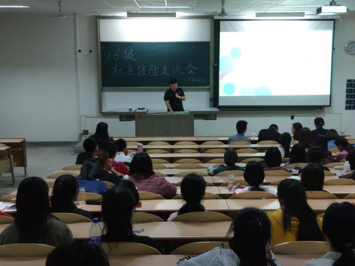 为提升2020届毕业生的就业能力,指导毕业生更好地开展职业规划,认清就业形势,把握机会优质就业。2019年5月28日晚,由best365网页16级主办的就业指导大会在教1—301教室顺利举行。此次讲座邀请到了往届优秀毕业生针对简历制作、面试礼仪、以及就业观等问题分享自己的经验,有辅导员周晨老师和全体有求职意向的大三同学参加本次大会。