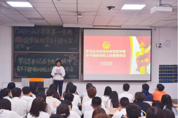 10月20日晚,best365网页组织全体团学干部“学习习近平总书记在中央党校中青年干部培训班上的重要讲话”。邀请了学院团委书记许金鑫及团学组织主席团。