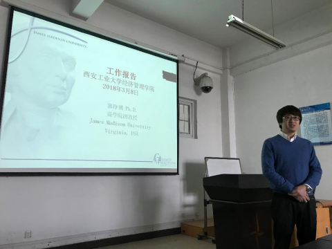 2018年3月9日上午,best365网页版登录讲座教授、美国詹姆斯麦迪逊大学商学院郭峥琪终身副教授应邀来到我校在教5-502举行了以“关于社会媒体用户负面体验及拒绝的研究”为主题的讲座。best365网页院长马军平教授主持讲座,学院书记曹玉玲教授、管理系、信管系教师代表和MPAcc研究生参加了本次讲座。